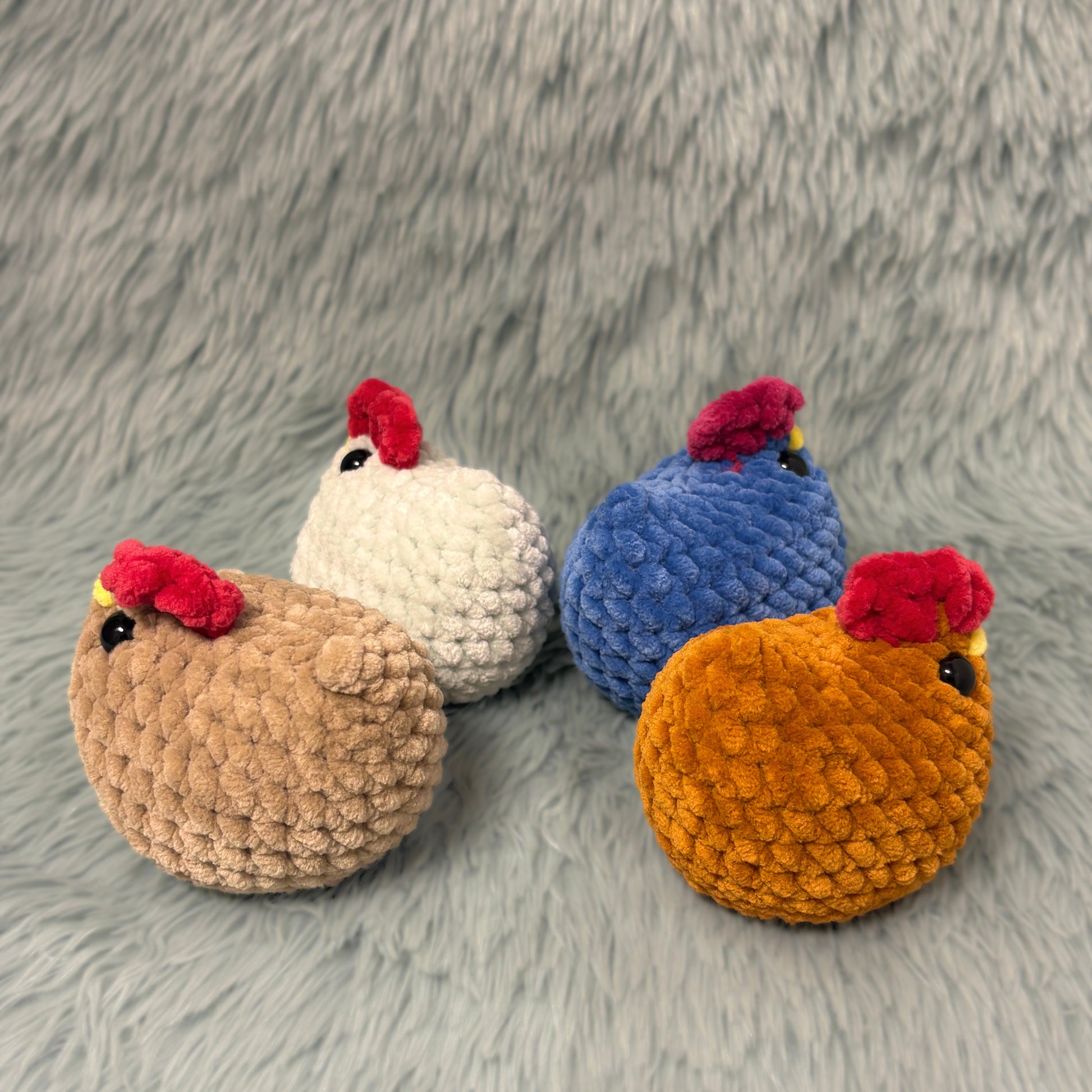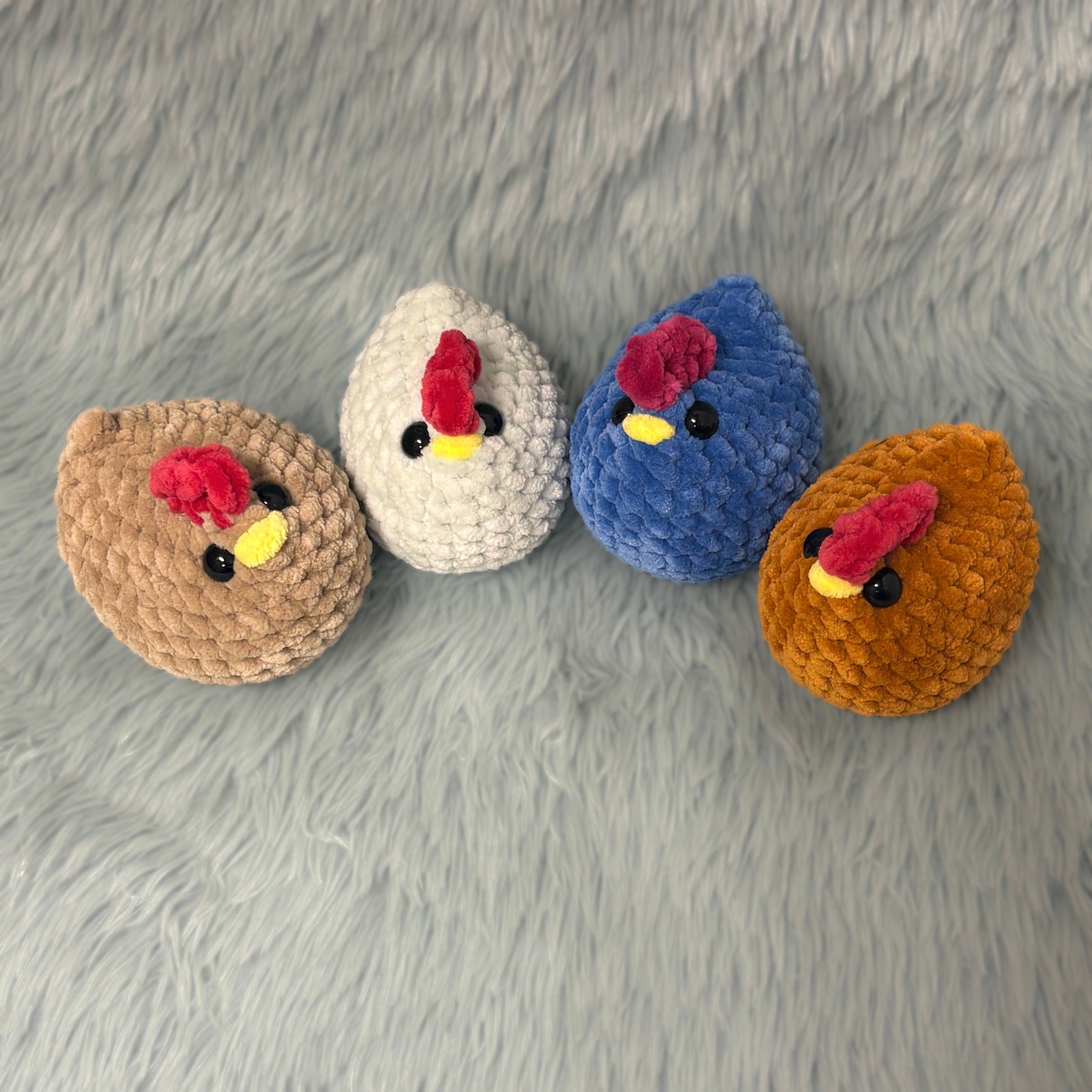 Diese süßen Hühner werden von mir mit Liebe und Sorgfalt in Handarbeit gehäkelt.